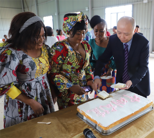 活動中,中色剛果有關(guān)領(lǐng)導(dǎo)同志與剛方員工一起切下見證中剛友誼的蛋糕,在音樂中一起舞蹈,眾人在歡聲笑語中共同慶祝了“三八”國際勞動婦女節(jié)。