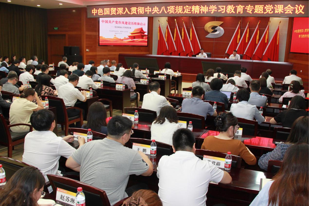 中色國貿舉辦深入貫徹中央八項規(guī)定精神學習教育專題黨課,引導廣大黨員干部職工充分認識到自身的責任和使命,持之以恒、與時俱進抓好作風建設,以優(yōu)良作風護航公司高質量發(fā)展。