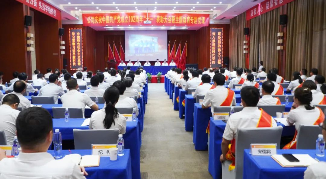 ????仲夏時節(jié),萬物豐茂。7月1日,中國有色集團黨校學術(shù)報告廳內(nèi),目光灼灼,掌聲迭起,公司慶祝中國共產(chǎn)黨成立102周年“七一”表彰大會暨主題教育專題黨課隆重舉行,引導廣大黨員牢記黨的光榮歷史和優(yōu)良傳統(tǒng),增強“四個意識”,堅定“四個自信”,做到“兩個維護”,凝聚推動公司綠色高質(zhì)量發(fā)展的奮進合力。公司黨委書記、董事長、總經(jīng)理胡國斌出席大會,講授題為《以習近平新時代中國特色社會主義思想為指導 加快推進公司綠色高質(zhì)量發(fā)展》的主題教育專題黨課。他指出,主題教育開展以來,在上級黨委的正確領(lǐng)導下,公司黨委堅持把理論學習、調(diào)查研究、推動發(fā)展、檢視整改貫通起來,有機融合、一體推進,引導廣大黨員干部職工在以學鑄魂、以學增智、以學正風、以學促干方面取得實實在在的成效。