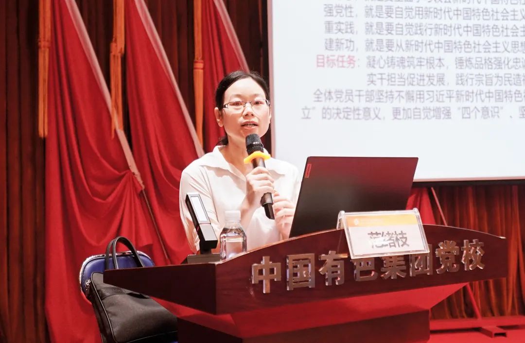 ????儀式后,湖北理工學院馬克思主義學院教授范緒枝以《高舉偉大旗幟 推進偉大復興》為題,結合主題教育,聚焦黨的歷次全國代表大會、黨的二十大報告等內容,講授了開班第一課。