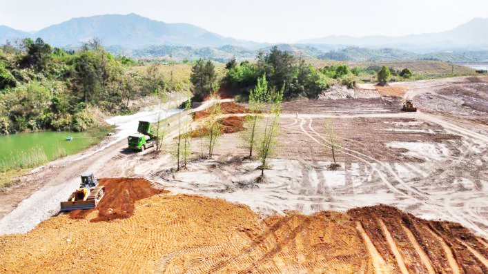 今年4月,項目進入壩面覆土階段,為了就近找到既符合土質(zhì)標準、又符合國土資源管理要求、且符合運輸成本最低條件的取土點,專班人員跑遍了周邊的村村落落、山地林坡,終于順利拿到取土審批手續(xù)。