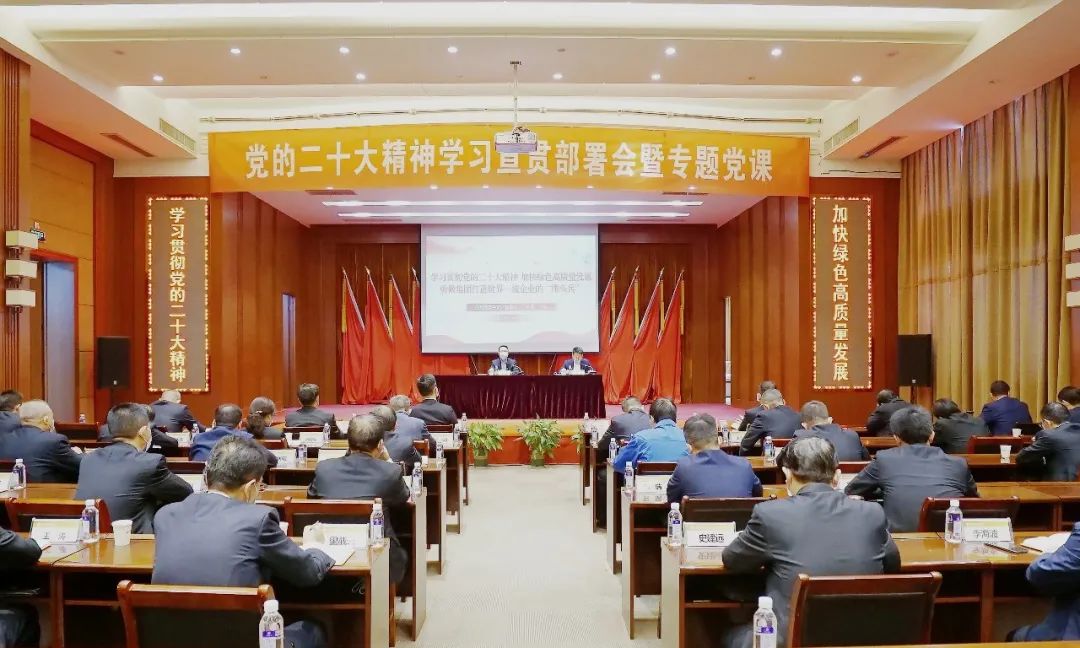 ????11月7日,在公司職教中心學(xué)術(shù)報告廳,公司召開黨的二十大精神學(xué)習(xí)宣貫部署會暨專題黨課。公司黨委書記、董事長、總經(jīng)理王焱以《學(xué)習(xí)貫徹黨的二十大精神 加快綠色高質(zhì)量發(fā)展 勇做集團(tuán)打造世界一流企業(yè)“排頭兵”》為題講專題黨課。公司黨委副書記、工會主席王勃就公司黨的二十大精神學(xué)習(xí)宣傳貫徹工作進(jìn)行了安排部署。