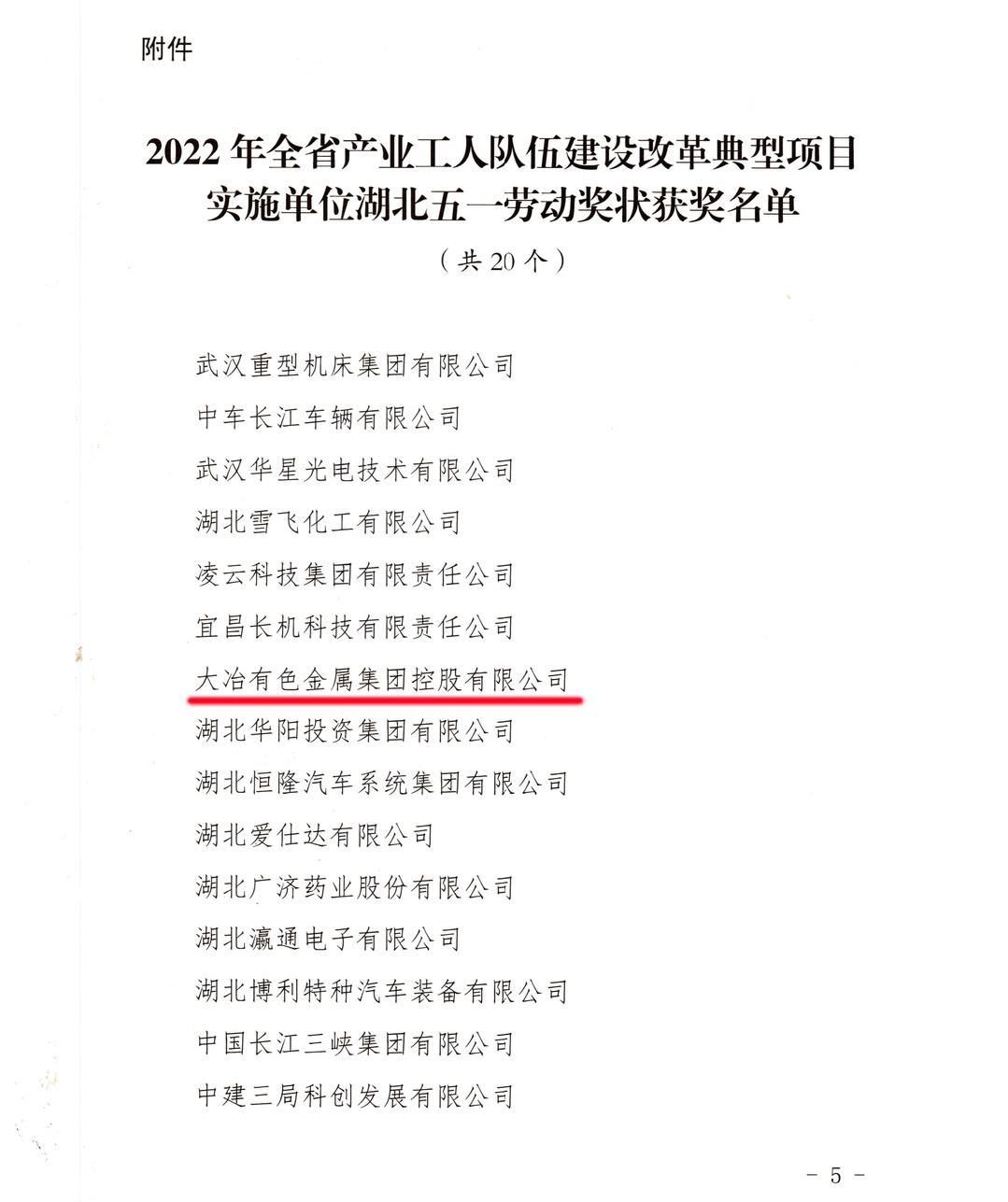 ????近日,公司“藍領(lǐng)創(chuàng)新聚合力,全員創(chuàng)效促發(fā)展”的改革實施項目被選樹為2022年湖北省產(chǎn)業(yè)工人隊伍建設(shè)改革典型項目,被湖北省總工會專項授予湖北省“五一勞動獎狀”。這是中國有色集團團結(jié)引導(dǎo)廣大職工深入貫徹落實習(xí)近平總書記對集團公司三次重要指示批示精神,扎實推進“1+4”發(fā)展戰(zhàn)略,大力弘揚勞模精神、勞動精神、工匠精神取得的又一重要榮譽。