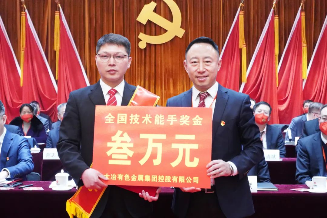 ????會上,播放了2022年度公司紅旗集體、紅旗班組以及勞動(dòng)模范先進(jìn)事跡視頻短片。公司領(lǐng)導(dǎo)為2022年度公司銅都工匠、紅旗集體、紅旗班組、勞動(dòng)模范和全國技術(shù)能手邵志村頒獎(jiǎng)。